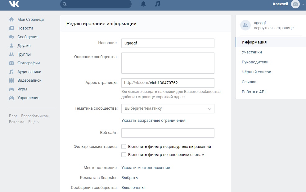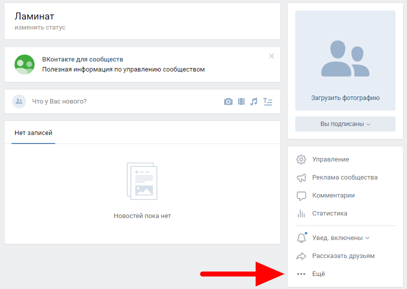 На этом создание сообщества можно считать завершенным. Теперь надо сделать ссылку на созданную группу и добавить в сообщество. Для этого: