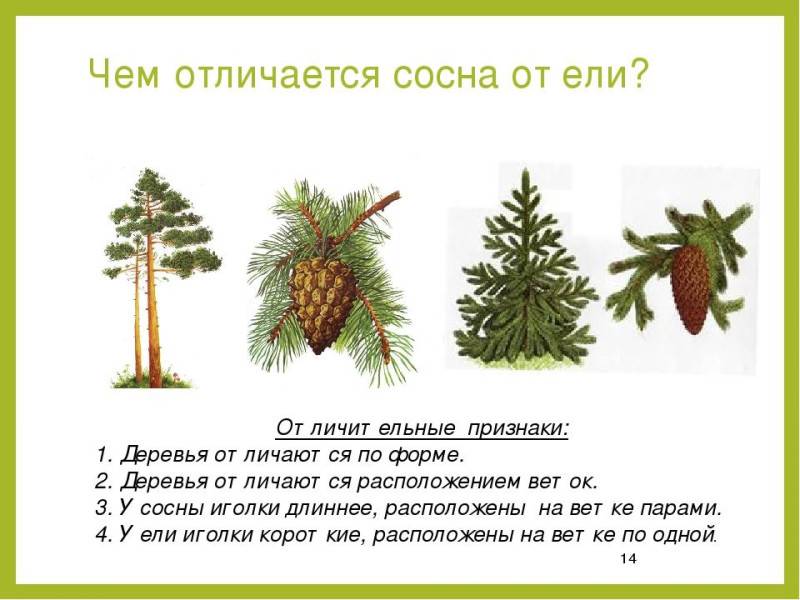 - Во-вторых, если внимательнее приглядеться к хвое деревьев, то можно без труда увидеть разницу между длинной еловых и сосновых хвоинок.