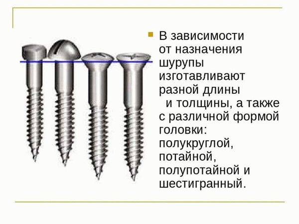 Каждый вид и форма шурупов и саморезов предназначены для определенных задач. Выбор правильного металлического крепежа важен для достижения надежного соединения и длительного срока службы товара.