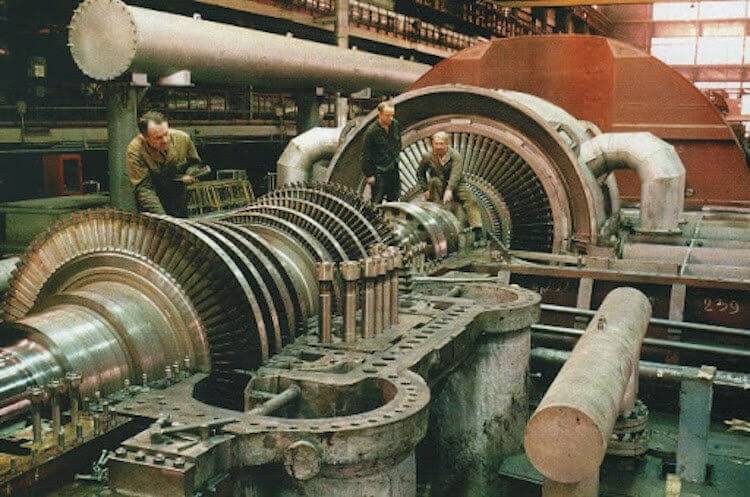 Когда вода нагревается в котле, она в виде пара попадает на отдельный блок генератора, где под большим давлением раскручивает турбины. Именно эти турбины и вырабатывают энергию.
