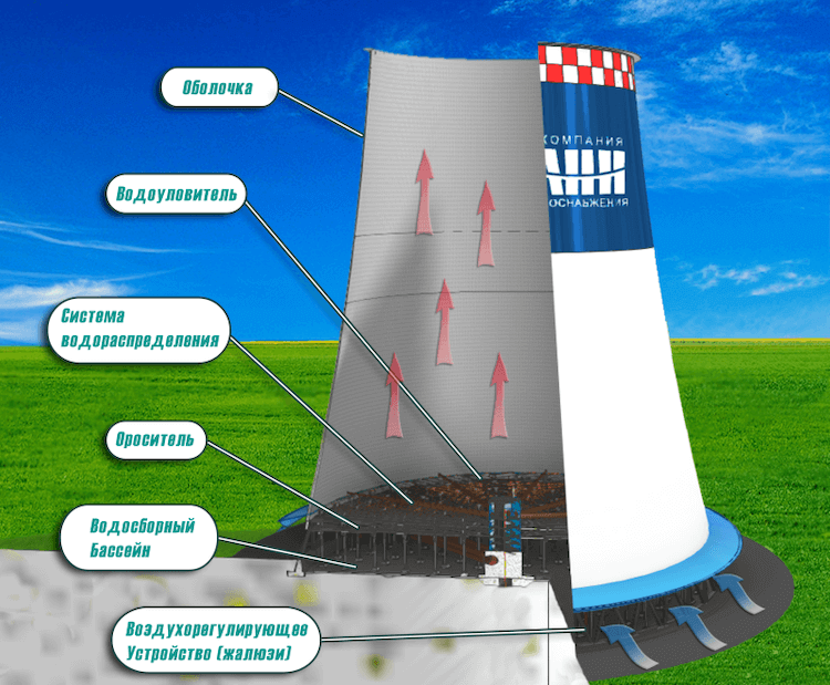 Остывшая вода попадает в градирни, где охлаждается и очищается от примесей серы и других веществ, которыми она насытилась. Охлаждение может показаться нелогичным, ведь это оборотная вода и ее все равно надо будет снова нагревать, но технологически охлаждение очень оправдано, ведь какое-то оборудование просто не может работать с горячей водой.