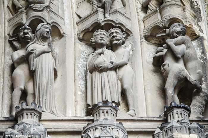 скульптуры в центре тимпана (внутренняя часть полукруглой арки,
