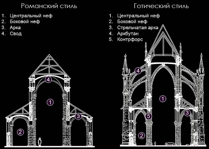 конструкций Романского стиля от более позднего Готического:
