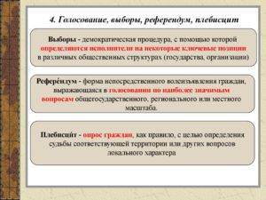 На выборах граждане отдают свое предпочтение партиям или личностям, высказывают доверие. В ходе референдума людьми реализуется право на участие в жизни страны.