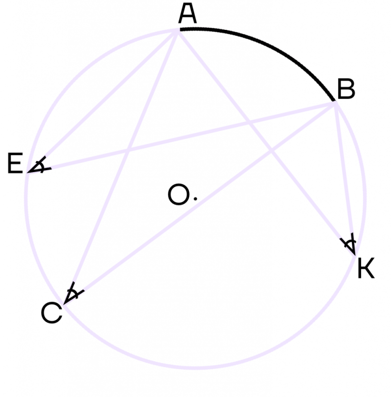 Пусть углы АСВ, АЕВ и АКВ опираются на душу АВ. Тогда эти углы будут равны между собой.