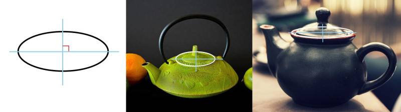 Так будет выглядеть построение кувшина, если его середина будет совпадать с линией глаз. Верхняя часть кувшина будет выше линии глаз — рисуем овал, у которого ближе к нам будет верхняя линия. Дно кувшина получается немного ниже уровня глаз, потому строим обычный овал. Но! Если кувшин (ваза) стоит далеко от зрителя (художника), то и верхний край и линия дна будут рисоваться простой прямой линией, как будто находятся на уровне глаз. Начинающие художники очень часто допускают ошибки именно при построении овалов, от чего портится впечатление от всей картины в целом. |