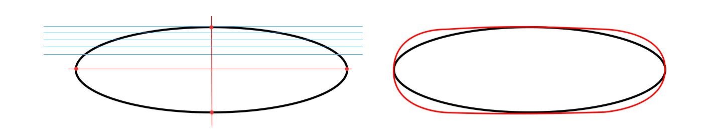 Эллипс можно получить, поменяв местами значения двух радиусов при построении круга. Если радиус по оси X больше радиуса по оси Y, то получится вертикальный эллипс. Если радиус по оси Y больше радиуса по оси X, то получится горизонтальный эллипс.