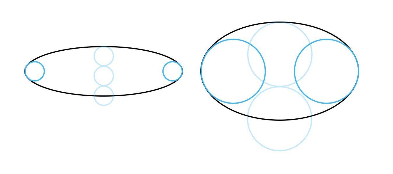 Овал можно «растянуть» как угодно. Это может быть практически круг, либо узкая и длинная замкнутая кривая — главное, чтобы ее форма удовлетворяла определению.