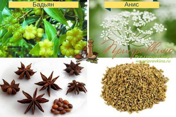 Анис визуально напоминает укроп и является травой, в то время как бадьян – это плоды кустарника, которые представляют собой жесткую коробочку с семенами, внешне похожи на звезду.