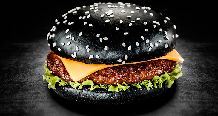 Интересным также является абсолютно чёрный гамбургер, который подают в разных ресторанах, в частности, в Японии. Необычный цвет обеспечивается за счёт активированного угля или чернил каракатицы (что встречается намного реже).