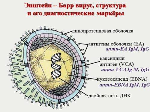 Вирус имеет несколько стадий развития с образованием 4 антигенов: ранний, капсидный, ядерный, мембранный. ВЭБ диагностируют по IgG анализу крови: