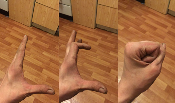 Кулак. Распрямить и вытянуть пальцы. Человек почувствует напряжение в суставах и мышцах. Дискомфорта возникать не должно. Начинать следует с простой растяжки. Пальцы собрать в кулак, большой палец разместив на остальных. В таком положении руку держать минуту. После кулак разжать и расправить пальцы, по максимуму растопырив их. Сеанс проводить не менее 4 раз.