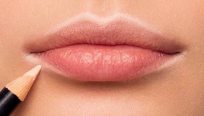 Если сделать подводку губ белым карандашом и плавно его растушевать к центру губ, то вы получите более объемные губки.