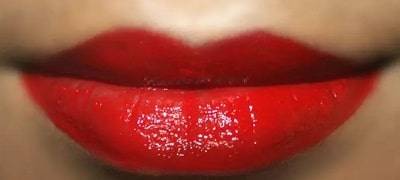 нанести губную помаду, а поверх нее прорисовать линию по кромке верхней губы и по середине нижней.