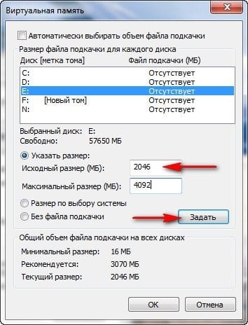 - 2 Гб оперативной памяти: файл подкачки – 1512-1512 Мб;