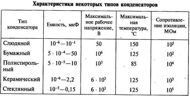 К параметрам конденсатора, которые используют для создания и ремонта электронных устройств, относят: