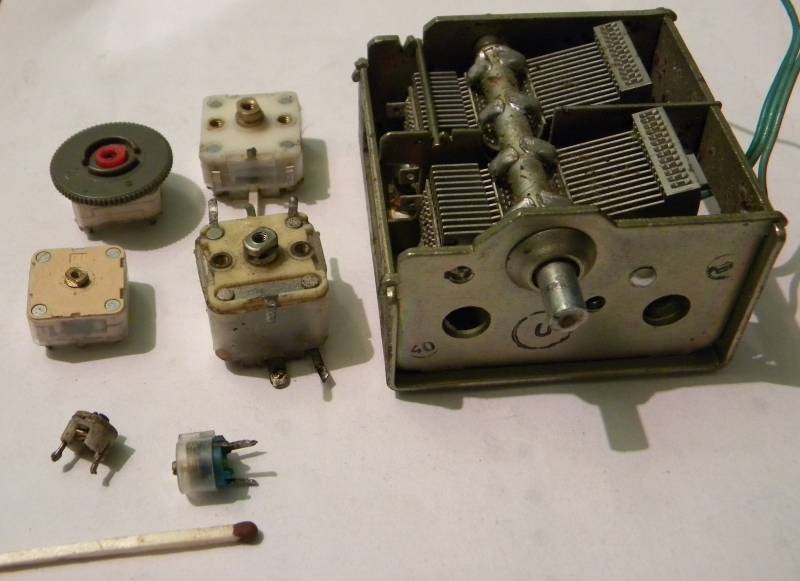 Эти виды конденсаторов имеют воздушный диэлектрик и могут менять свою емкость под действием внешней силы, например, такой как рука человека. Ниже на фото советские типы таких переменных конденсаторов.