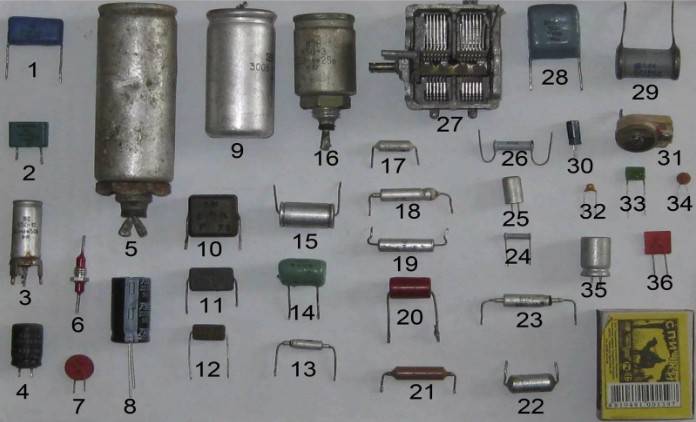 Реже встречаются старые советские конденсаторы с диэлектриком из слюды или промасленной бумаги.