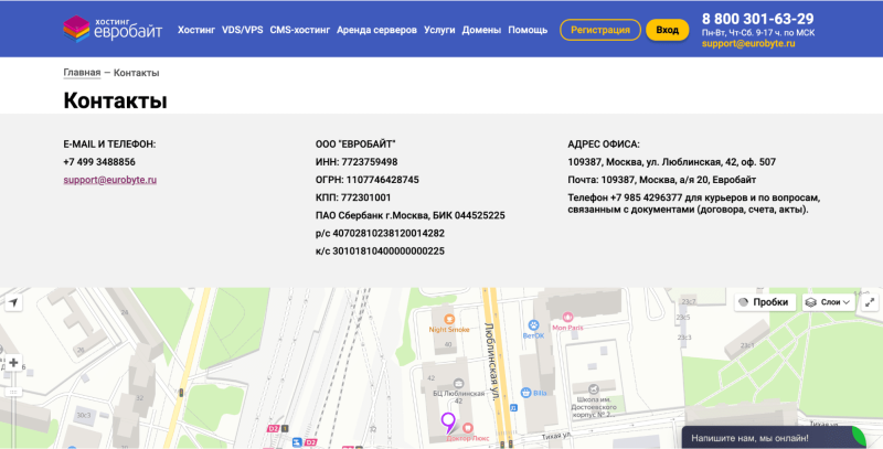 - контактную информацию: адреса филиалов, телефон и электронную почту для связи.