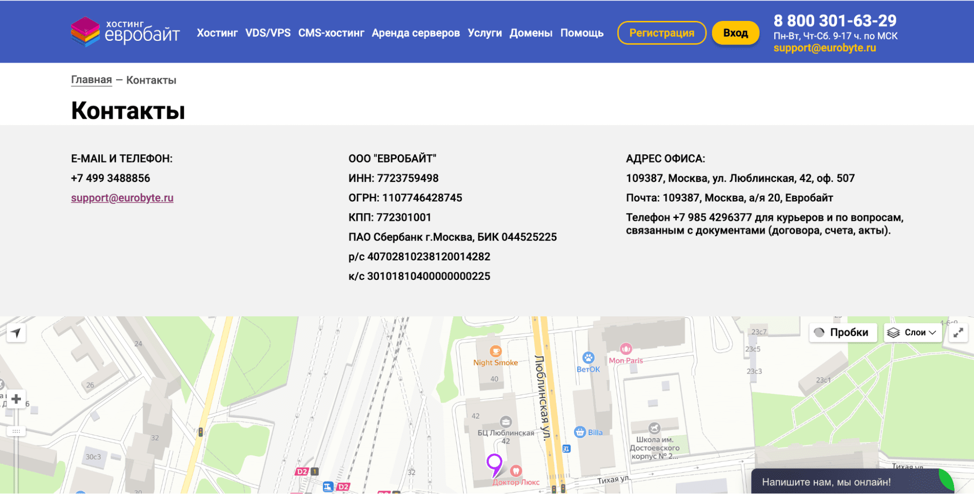 Пример страницы контактов на сайте.