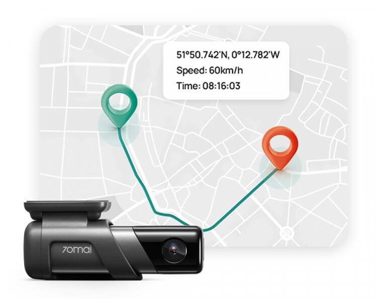 Видеорегистратор 70mai Dash Cam M500 имеет еще одно важное преимущество — это более точное определение местоположения при помощи GPS и Глонасс. Система определения геопозиции в устройстве принимает данные со спутников и обеспечивает прием сигнала даже в самых отдаленных местах, где возникают сложности и помехи в работе GPS